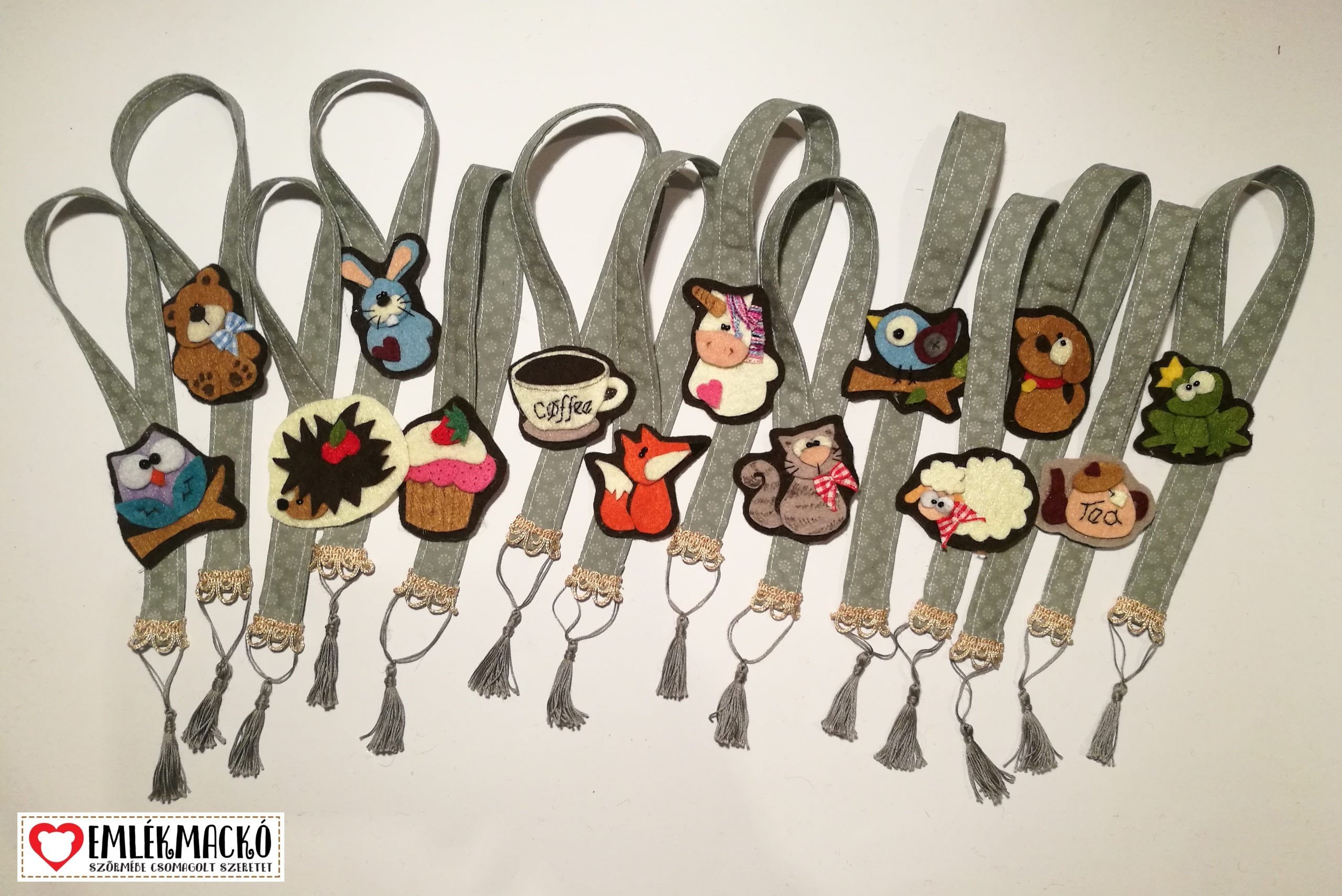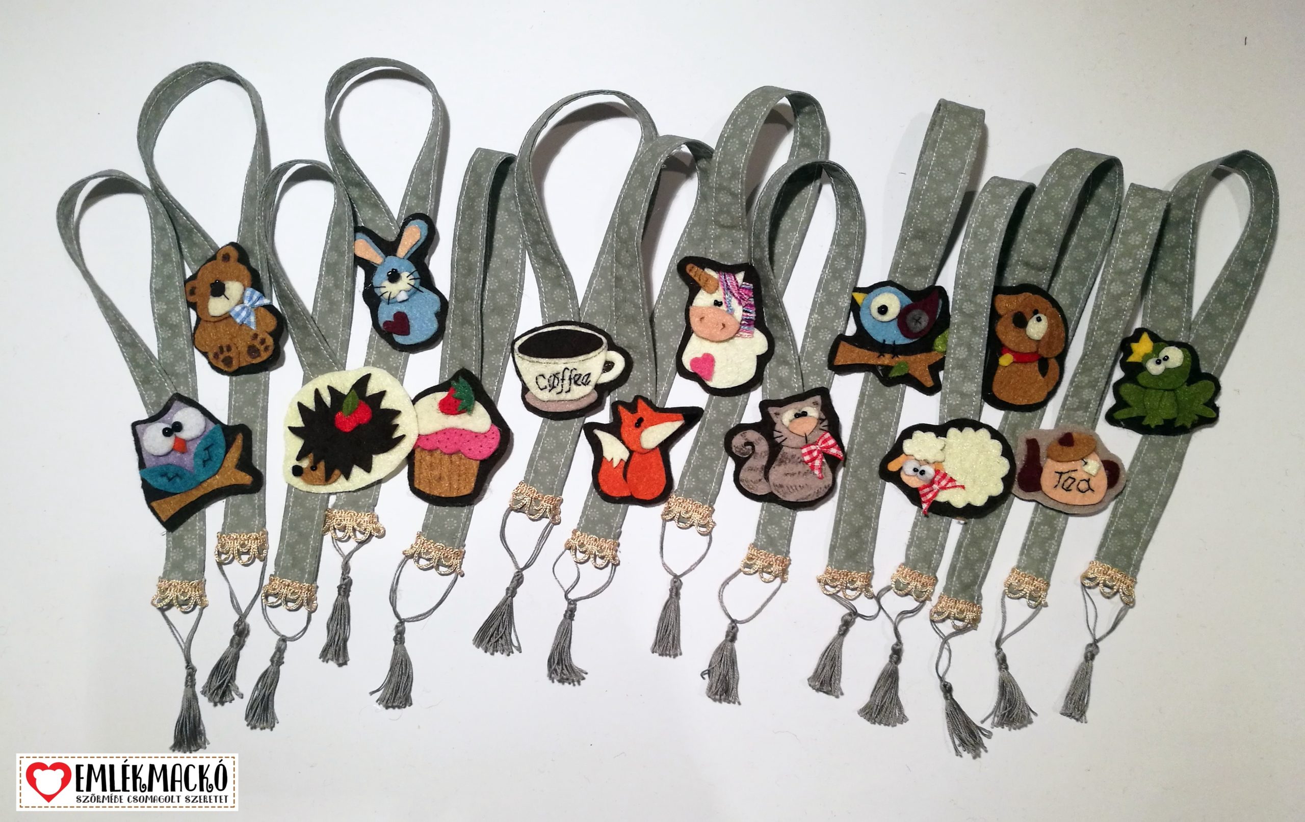 Textil szalagra varrt filcfigurás könyvjelző bojt véggel. A könyvjelző 15 féle figurával választhatod.